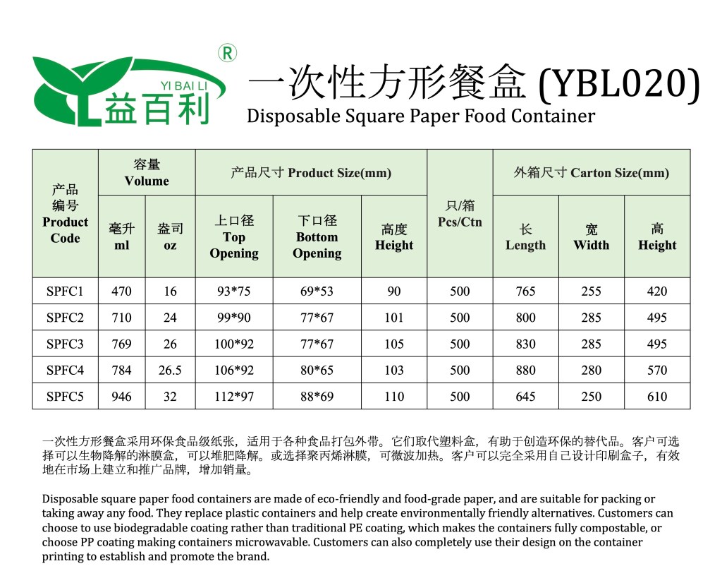 | 一次性方形餐盒 | Disposable Square Paper Food Container |